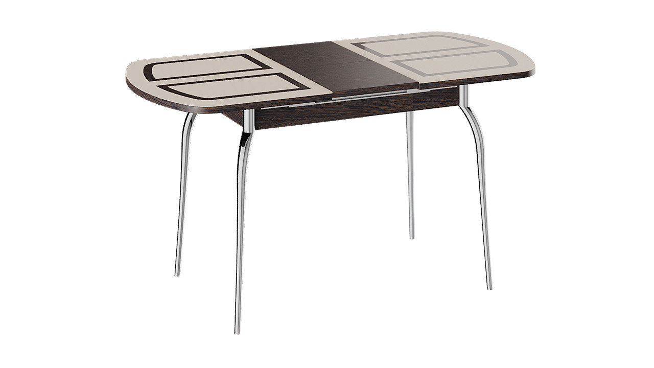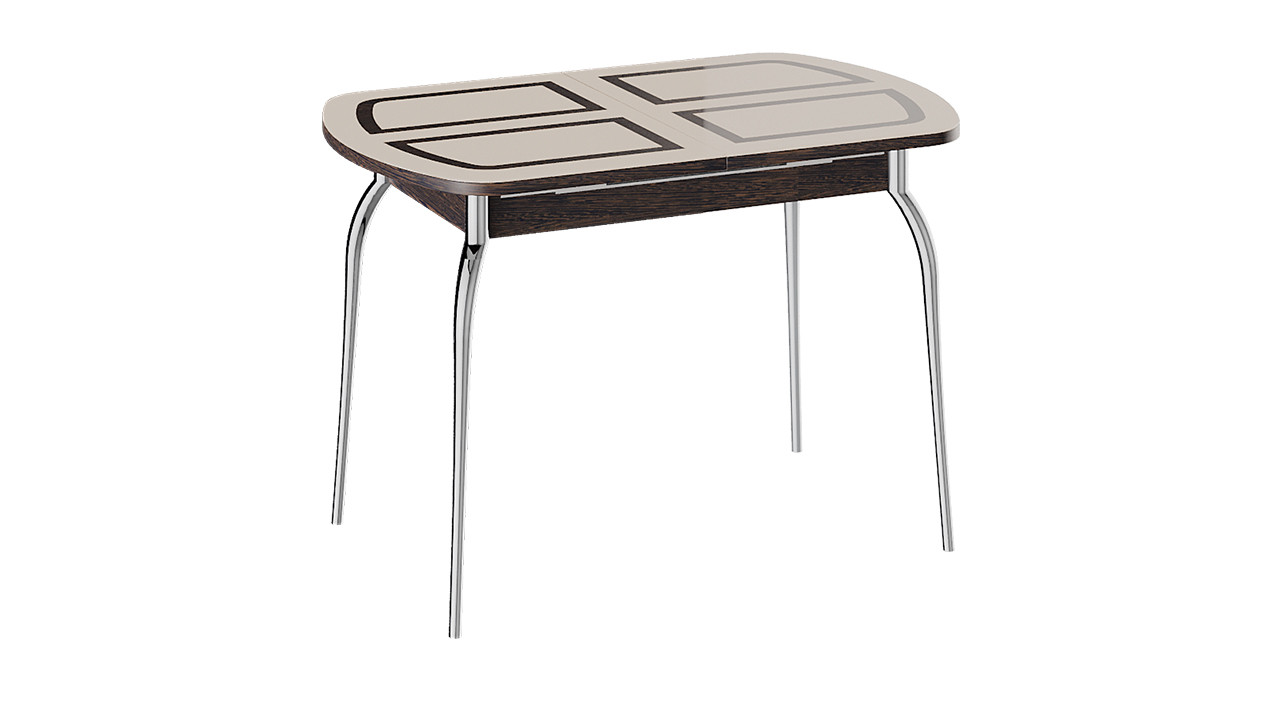—Стол Обеденный Раздвижной со Стеклом «Рио» (Венге/Стекло бежевое с рисунком)/Ш-700 x Д-1100/1450 мм x В-750 мм